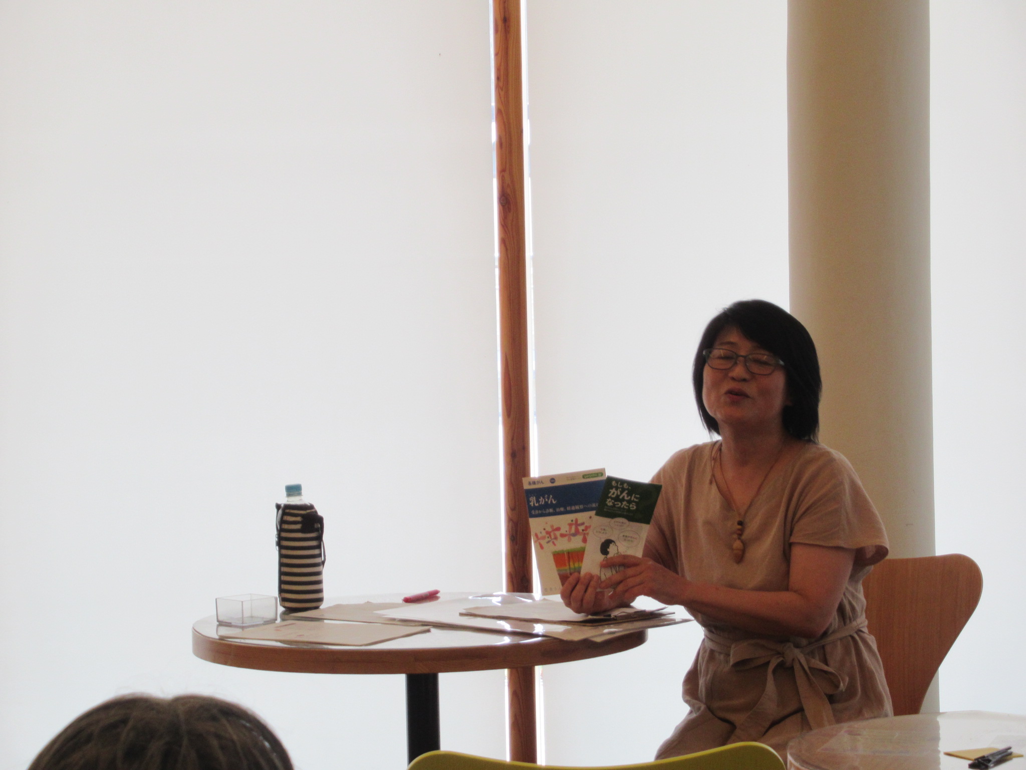 がんは特別な病気ではない事、日本人のふたりに一人がかかると言われている事、がんのしくみ、がん予防と多岐にわたるお話を伺いました。また、相談に来られる方の相談例には、皆さんうなづきながら聞いていらっしゃいました。