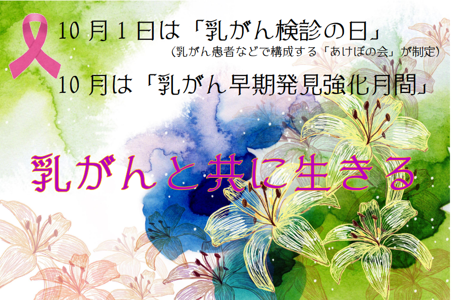 10月は「乳がん早期発見強化月間」です。乳がんのことを知り、検診をきちんと受けることの必要性を理解する機会にして欲しいです。