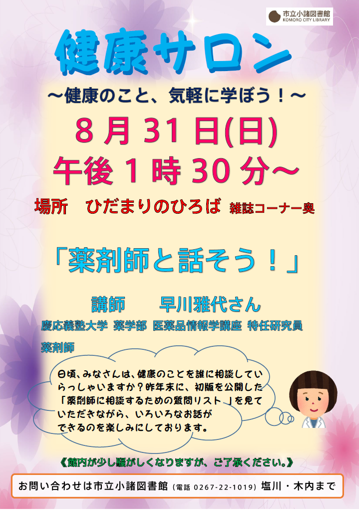 ★健康サロンが、慶應義塾大学薬学部のサイトに紹介されました。こちらもご覧ください。