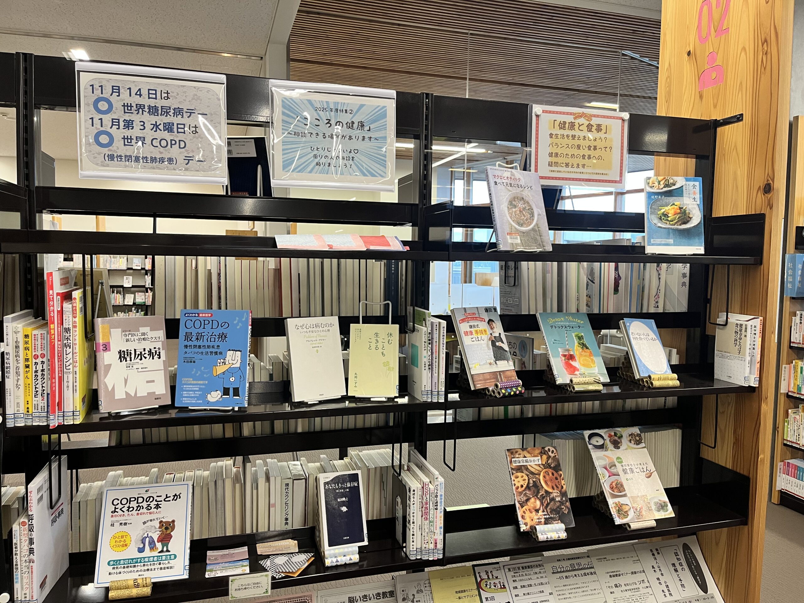 スタッフおすすめコーナーとして、テーマを決めて資料を展示します。10月~12月は「生活習慣病」を取り上げます。