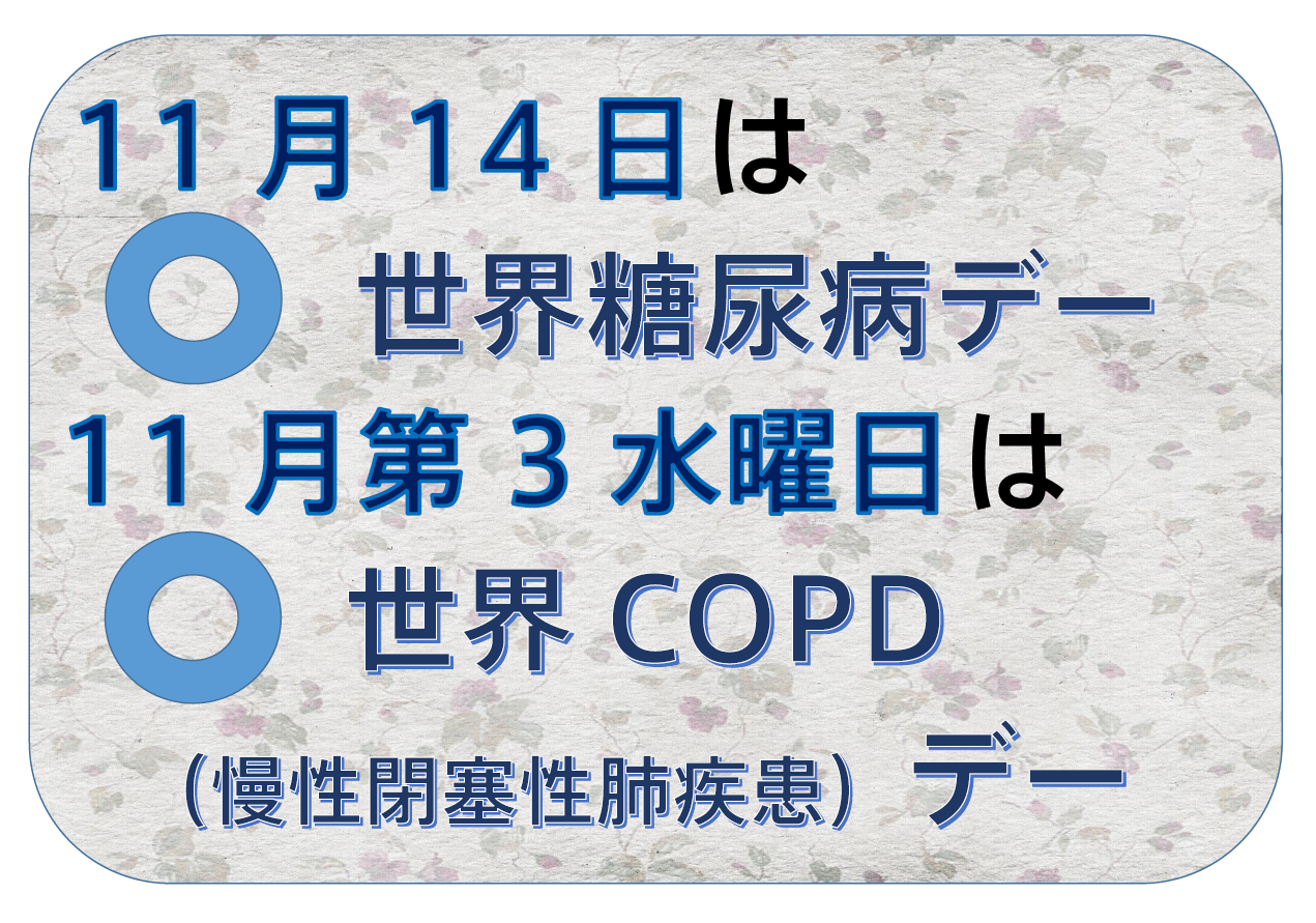 11月第3水曜日は「世界COPD(慢性閉塞性肺疾患)デー」です。