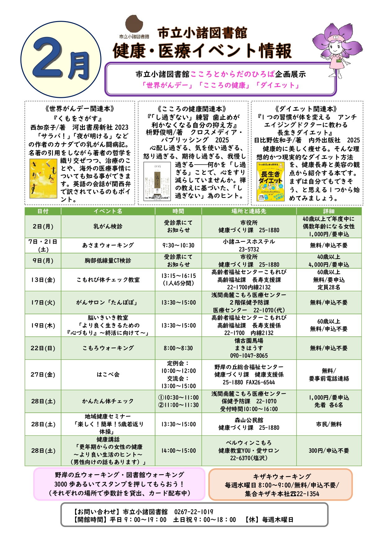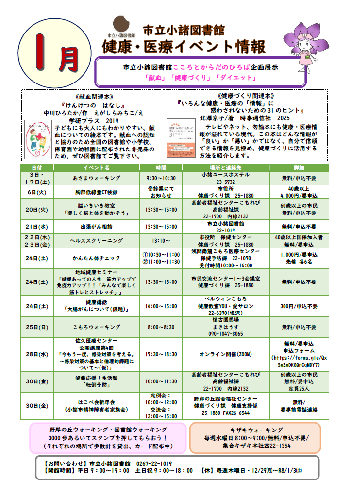 小諸市で今年度、力を入れている「健康寿命を延ばす」をテーマに健康で過ごすことのできる秘訣を本から探してみませんか?