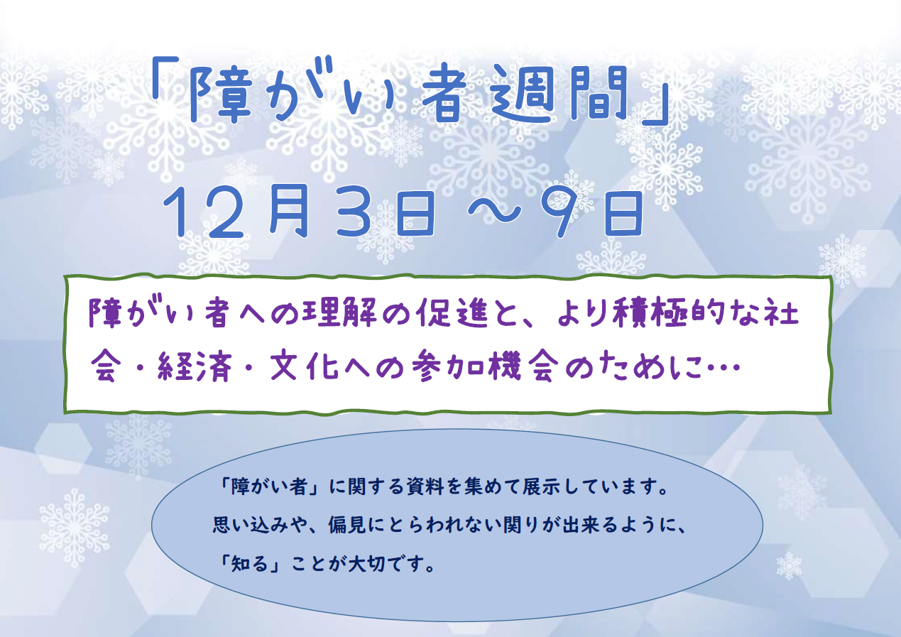 「国際障害者デー」の12月3日から12月9日までは「障がい者週間」です