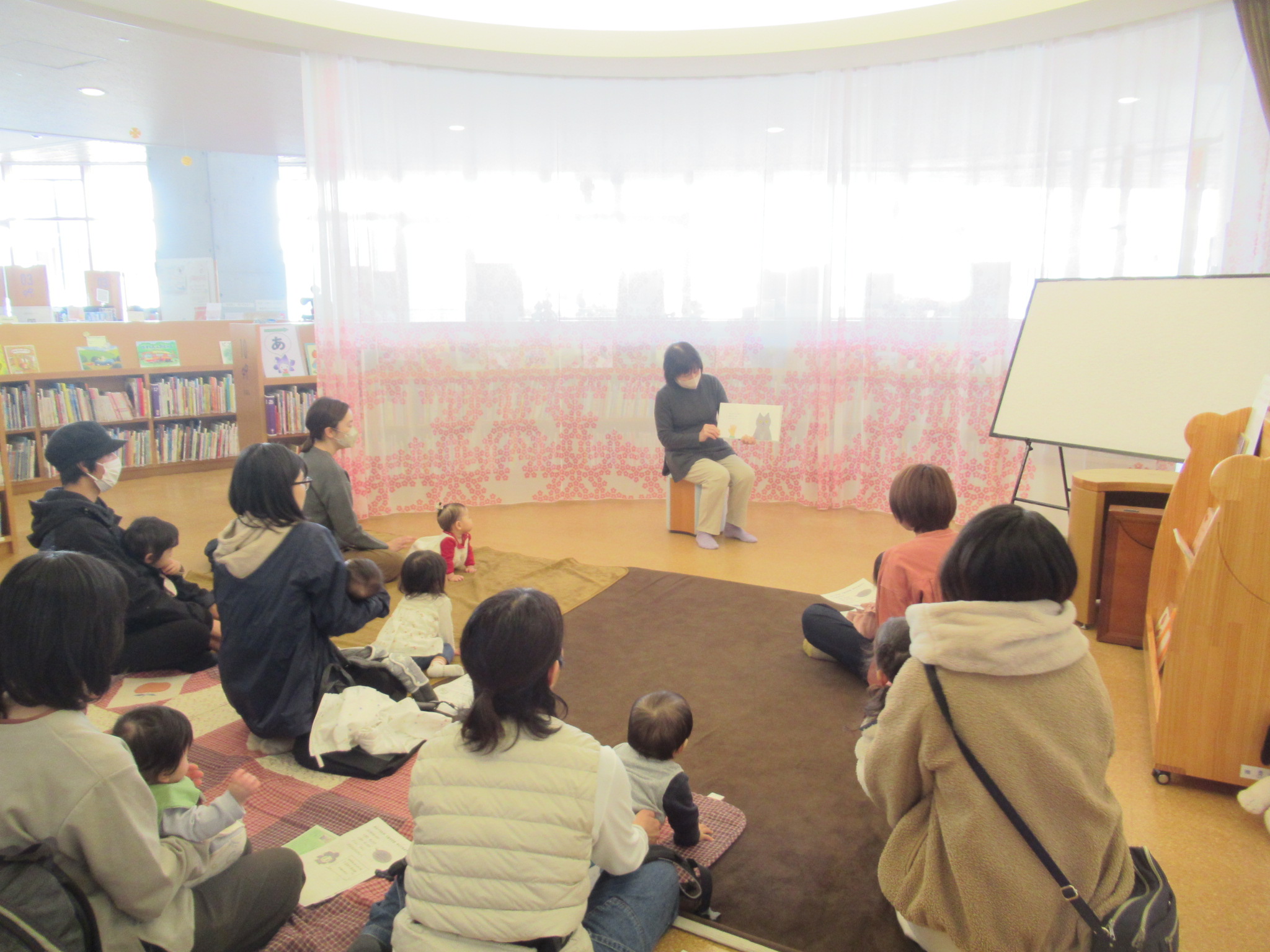 保育士さんによる、簡単な運動遊びの後、図書館職員による絵本紹介を行います。